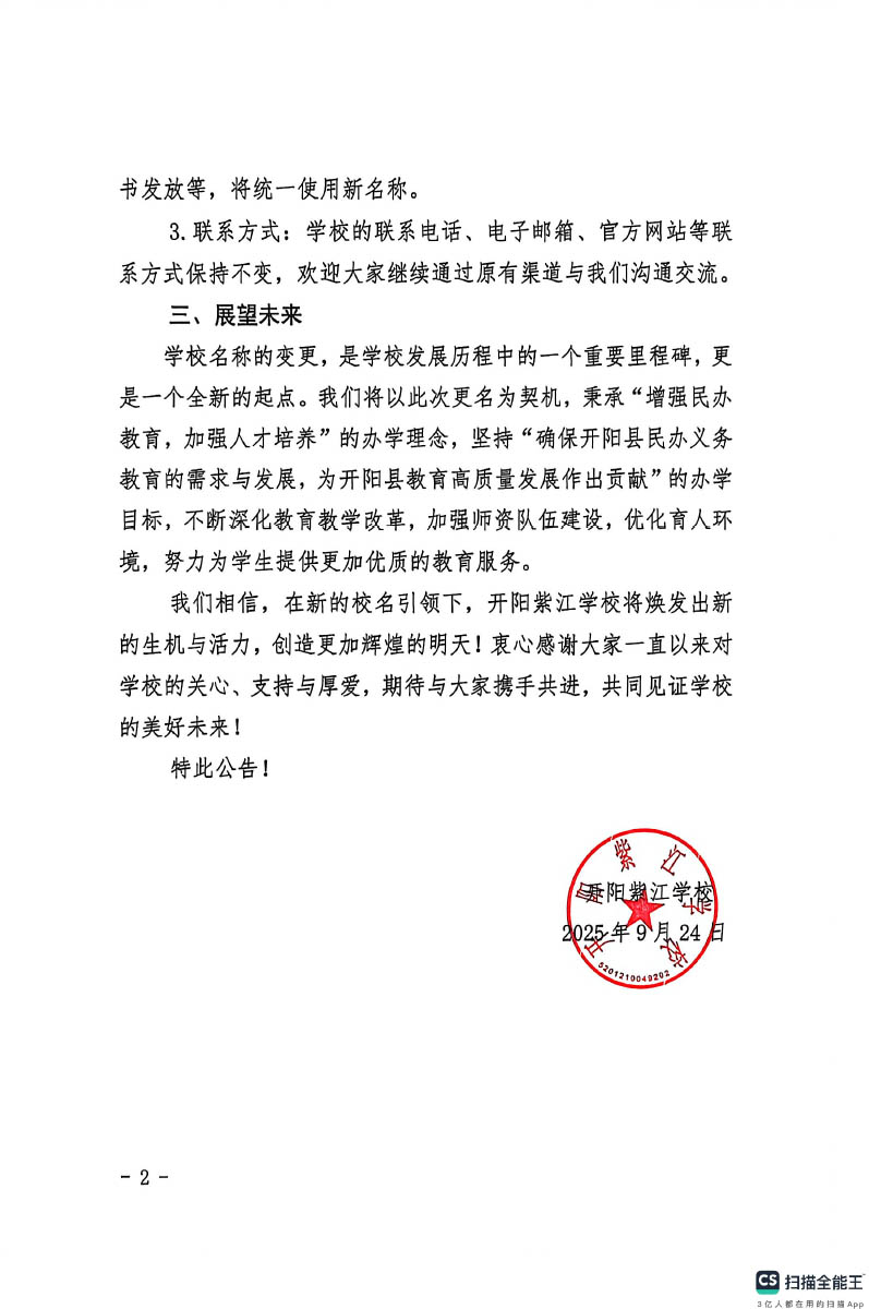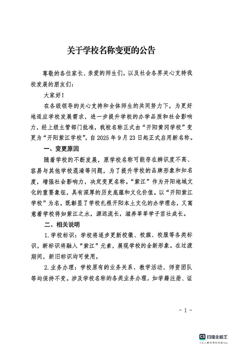 关于学校名称变更的公告
